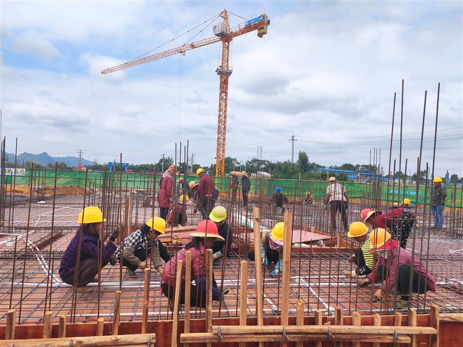 河池·澳門國際城雙語幼兒園項目部根據施工進度要求,結合項目實際情況,加大人力物力投入,制定合理詳細的搶工倒排計劃并嚴格實施,在“雙節(jié)”期間進行首層梁板鋼筋驗收,并加班加點進行樓面澆筑,以確保項目按質按量如期交付。
