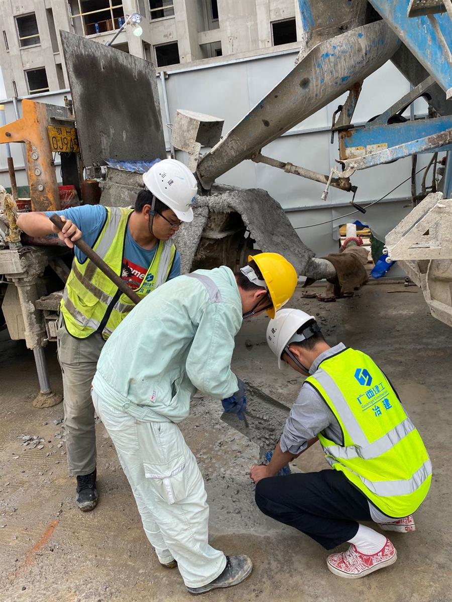 馬達聲、電鉆聲轟鳴,混凝土攪拌車、混凝土泵車、材料運輸板車、土方綠皮車來往穿梭,綁扎鋼筋、混凝土塌落度試驗、澆筑混凝土、升爬架前驗收等工作有條不紊進行,這是第四分公司融創(chuàng)江南林語項目的趕工現(xiàn)場。