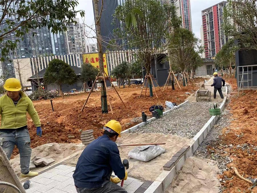 為如期實(shí)現(xiàn)建成目標(biāo),項(xiàng)目部積極協(xié)調(diào)各方力量,科學(xué)合理安排工序,在保證安全生產(chǎn)和施工質(zhì)量的前提下,全力加快推進(jìn)項(xiàng)目建設(shè),爭(zhēng)取早日完成地面部分工程,達(dá)到開放條件。截至目前地下室框架已完成,室外給排水管道完成95%,路面路基整形完成100%,園林綠化完成80%,出入口裝飾裝修完成80%,地面鋪裝完成80%。