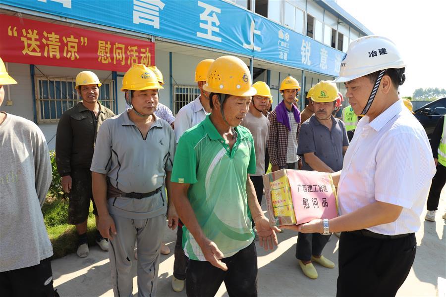 8月7日,冶建公司董事長(zhǎng)、黨委書記覃振華,總經(jīng)理、黨委副書記蒙勝益分別到壓力容器制造廠、柳州市柳東新區(qū)明德小學(xué)項(xiàng)目開(kāi)展“送清涼”慰問(wèn)活動(dòng)。