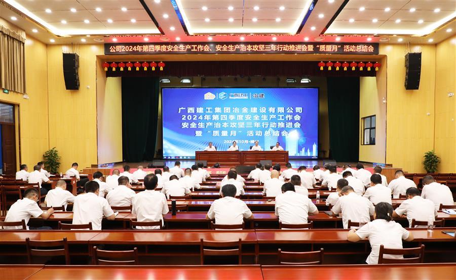 10月10日,冶建公司2024年第四季度安全生產(chǎn)工作會、安全生產(chǎn)治本攻堅三年行動推進(jìn)會暨“質(zhì)量月”活動總結(jié)會在禮堂召開。公司總經(jīng)理、黨委副書記蒙勝益參加并講話,副總經(jīng)理、總工程師廖立波,副總經(jīng)理何勇參加,代安全總監(jiān)韋克雪主持。