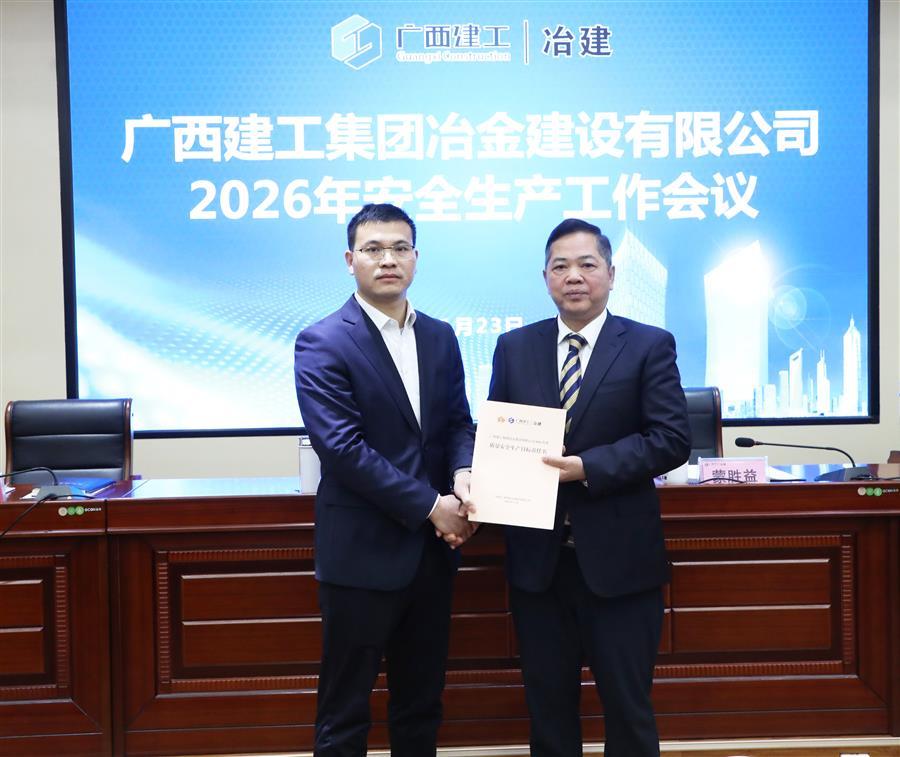 1月23日,冶建公司2026年安全生產(chǎn)工作會(huì)議在第二會(huì)議室召開(kāi)。會(huì)議深入貫徹習(xí)近平總書記關(guān)于安全生產(chǎn)的重要論述和指示批示精神,全面貫徹落實(shí)中央、自治區(qū)安全生產(chǎn)會(huì)議及集團(tuán)公司年度安全生產(chǎn)工作會(huì)議精神,總結(jié)公司2025年安全生產(chǎn)工作,分析新形勢(shì)下安全生產(chǎn)面臨的突出問(wèn)題,部署2026年安全生產(chǎn)工作。公司董事長(zhǎng)、黨委書記覃振華出席并講話,公司總經(jīng)理、黨委副書記蒙勝益作安全生產(chǎn)工作報(bào)告,領(lǐng)導(dǎo)班子成員賴海標(biāo)、廖立波、阮仁勝、葉益華參加。公司副總經(jīng)理、安全總監(jiān)韋克雪主持會(huì)議。