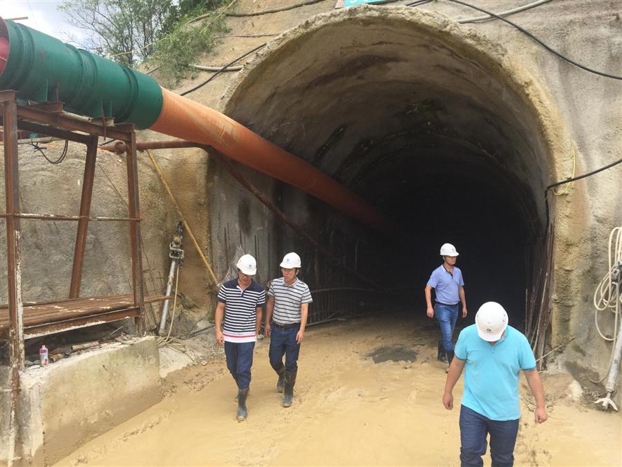 廖副總一行首先實(shí)地察看了隧洞進(jìn)口、3#支洞、出洞口等項(xiàng)目的施工進(jìn)展情況,并進(jìn)洞仔細(xì)觀察和了解掌子面的圍巖地質(zhì)條件與開挖情況,認(rèn)真聽取項(xiàng)目負(fù)責(zé)人關(guān)于當(dāng)前工程建設(shè)的有關(guān)匯報。