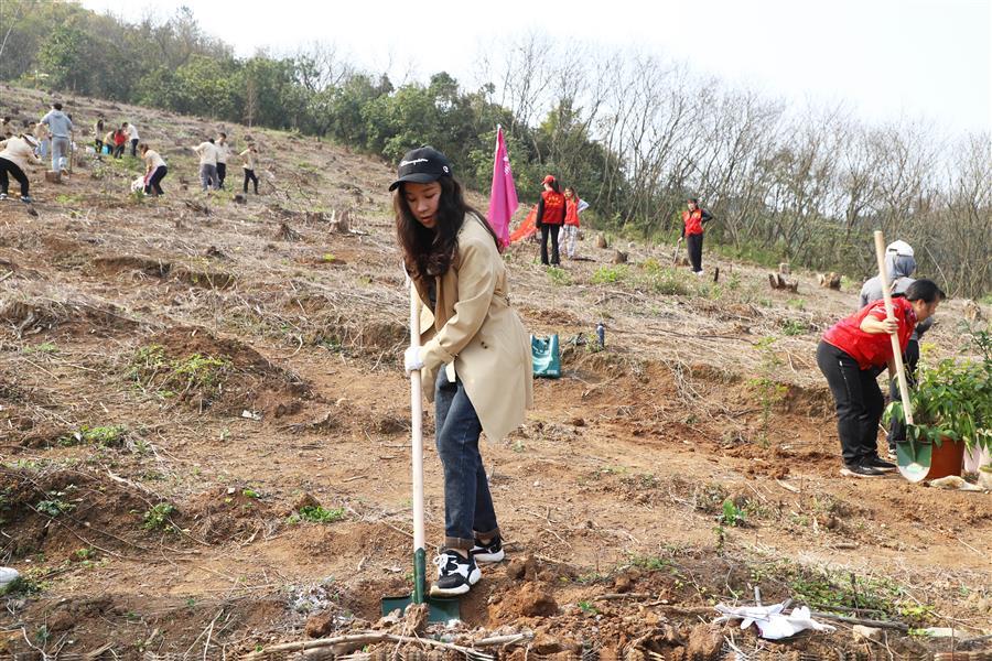 植樹現(xiàn)場(chǎng),鏟土挖坑、扶苗填土、提水澆灌……志愿者們有序分工、各司其職,每個(gè)環(huán)節(jié)銜接有序、有條不紊,合力栽下一株株樹苗,植樹現(xiàn)場(chǎng)處處都呈現(xiàn)出忙碌景象。經(jīng)過大家的辛勤勞動(dòng),一株株小樹苗在蓮花山上“安家落戶”,為蓮花山增添了一道道靚麗的風(fēng)景線。