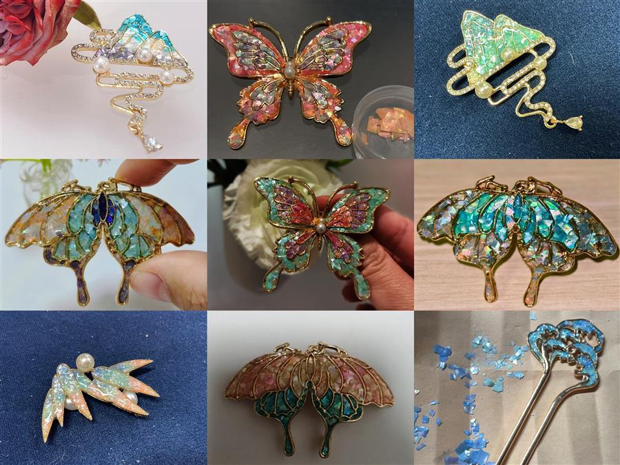 制作螺鈿胸針成品